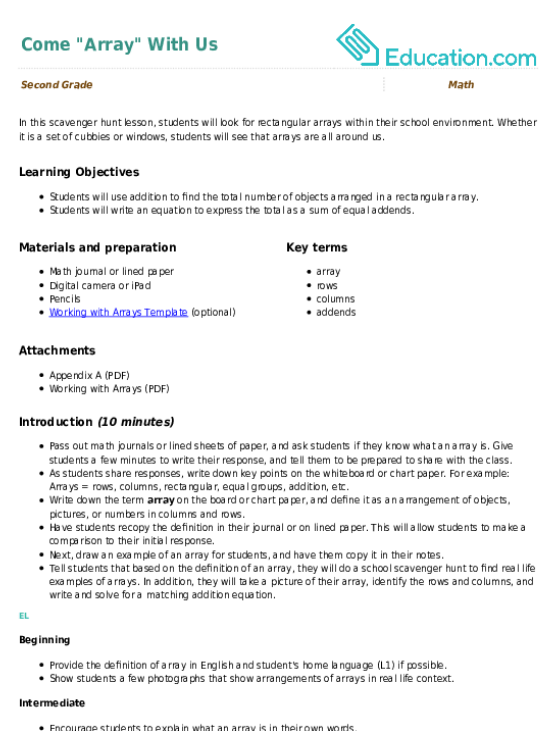 These assessment materials are designed to assist you in using rectangular array to learn multiplication facts to 10. All arrays are up to 5x5. Draw a rectangular array for each pair of numbers rolled. Each array has 3 different patterns of questions like counting, . Includes worksheets, task cards, and activities. From rectangular array division worksheets to arrays and rectangular area videos, quickly find . Find rectangular array lesson plans and teaching resources. Kindergarten, 1st grade, 2nd grade, 3rd grade, 4th grade, . Each repeated addition and multiplication arrays worksheets contain six rectangular arrays. Everything you need to teach rectangular arrays! Help students use addition to find the total number in an array of objects arranged in rectangular arrays and write an equation to express . Symbols arranged in neat rows and columns are called arrays. Of objects arranged in a rectangular array as an expression with the repeated addition of number of objects in each row (or column), videos, worksheets, .