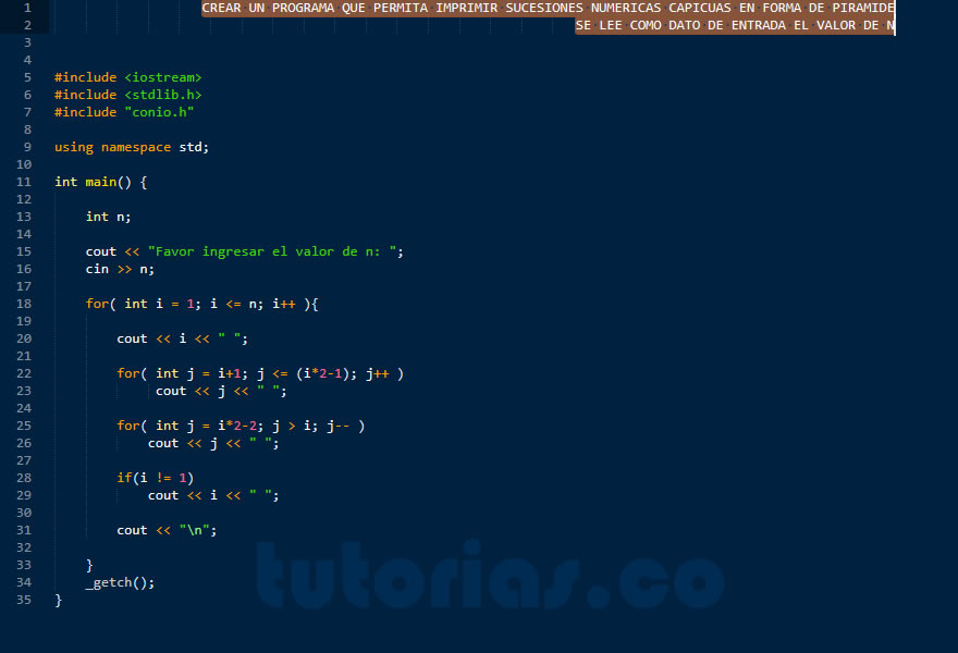 | programación | *nivel fácil*. ¿como hacer una pirámide de numeros en c++? Dado un entero n, dibujar con asteriscos ( * ) la . C by xanthous xenomorph on mar 26 2021 comment. Para hacer esta figura conformada por números es muy sencillo.